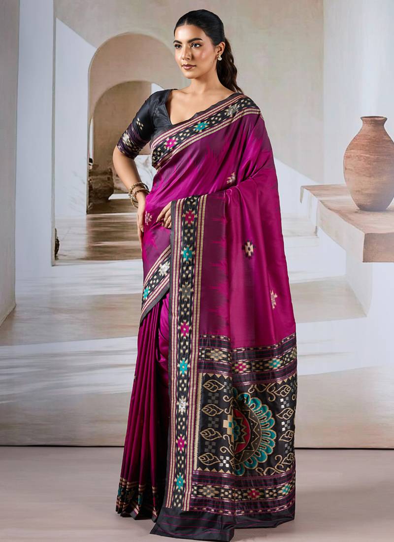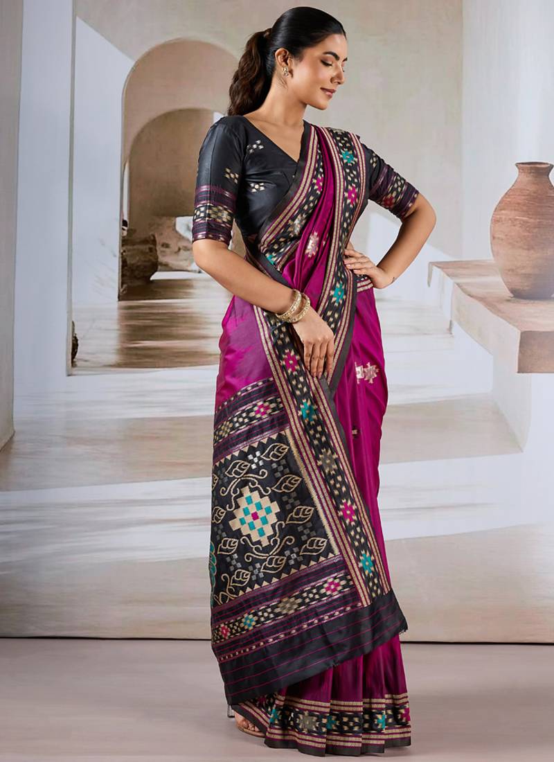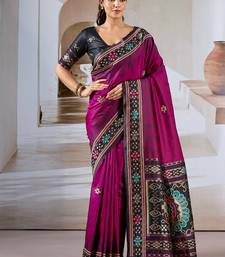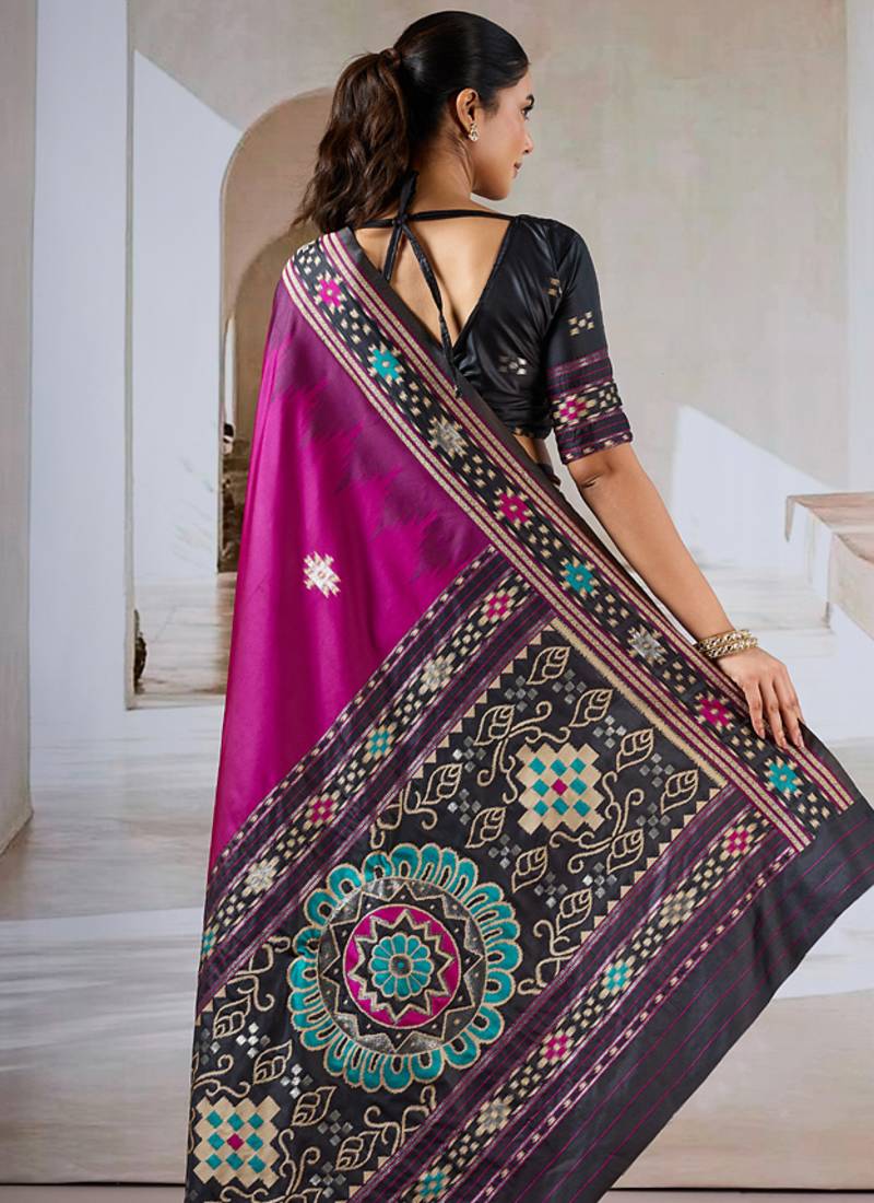 Rani pink patola handloom weaving silk blend saree