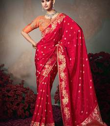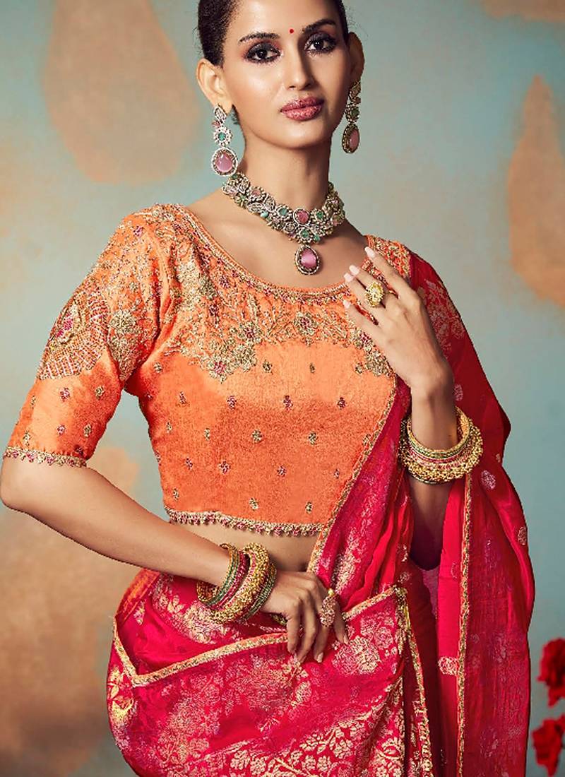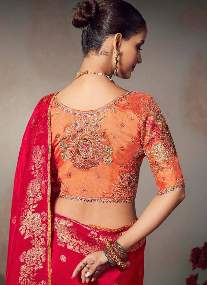Red chiniya silk blend saree heavy designer embroidered blouse