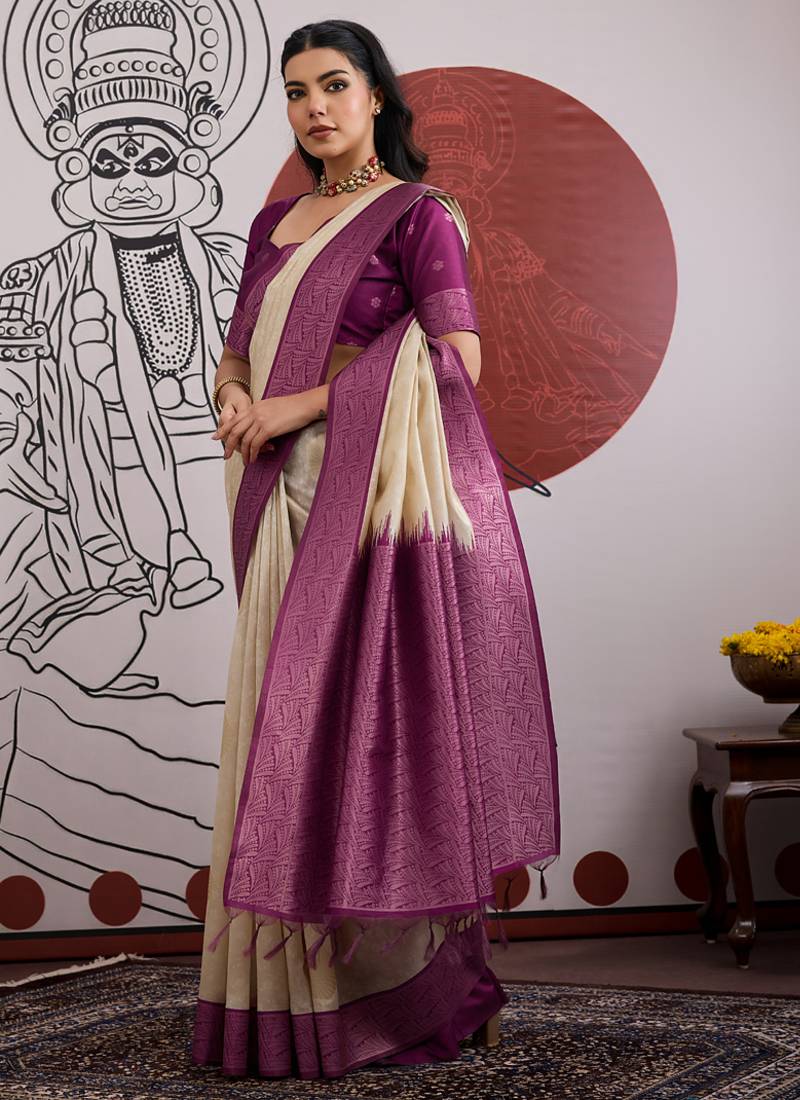 | • | Saree | : | Color- Off White / Fabric- Silk Blend |