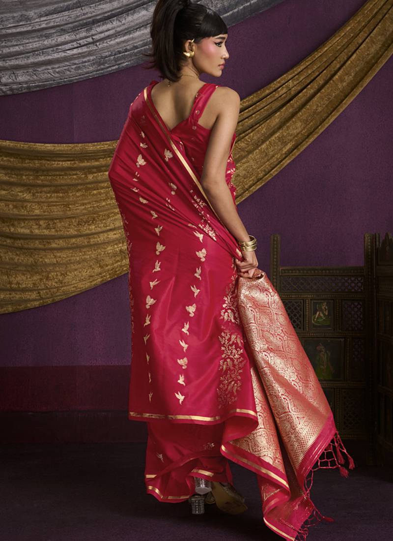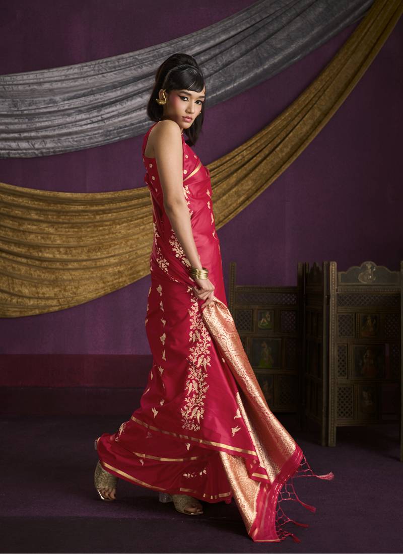 | Product Name | Red Pure Satin Handloom Weaving Silk Saree With Tussle Pallu | |