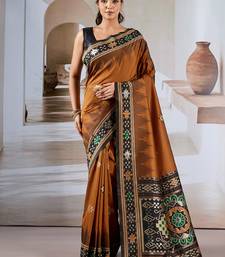 Rust patola handloom weaving silk blend saree