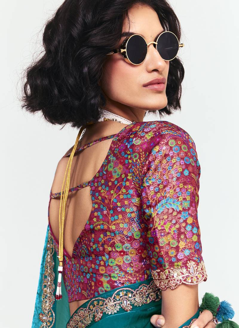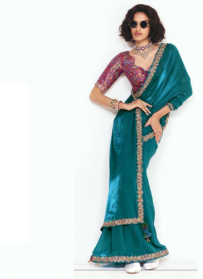 | Product Name | Teal Fancy Beautified With Sequins ,Dhaga ,Thread Embroidered Work Saree | |