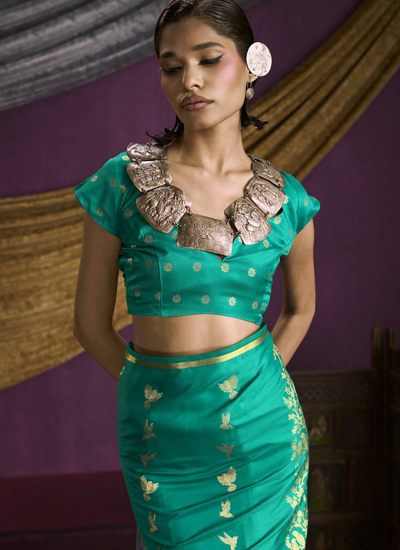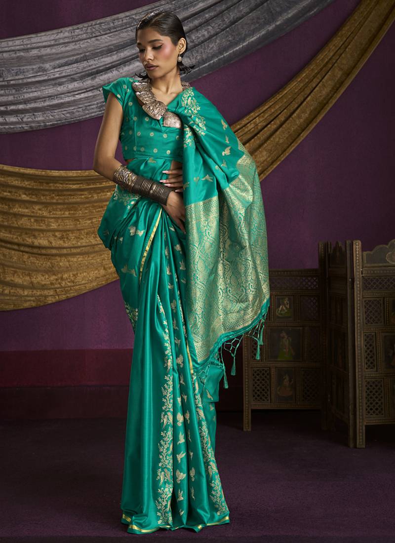 | Product Name | Turquoise Pure Satin Handloom Weaving Silk Saree With Tussle Pallu | |
