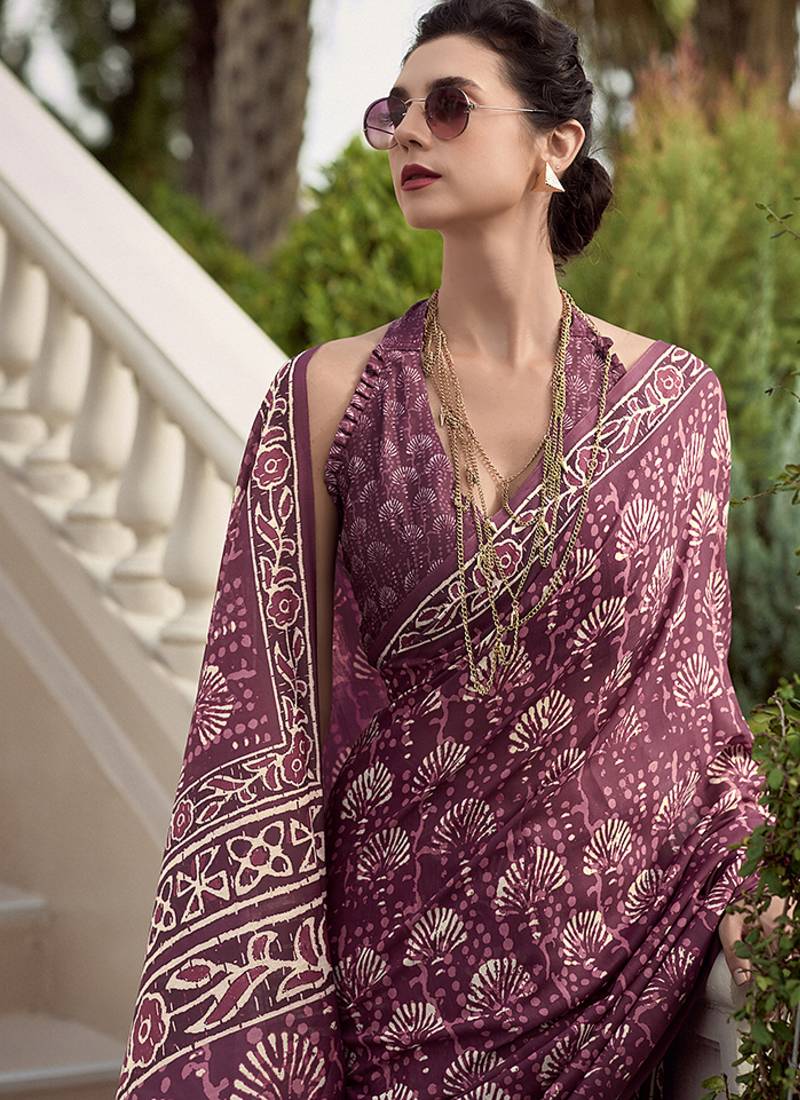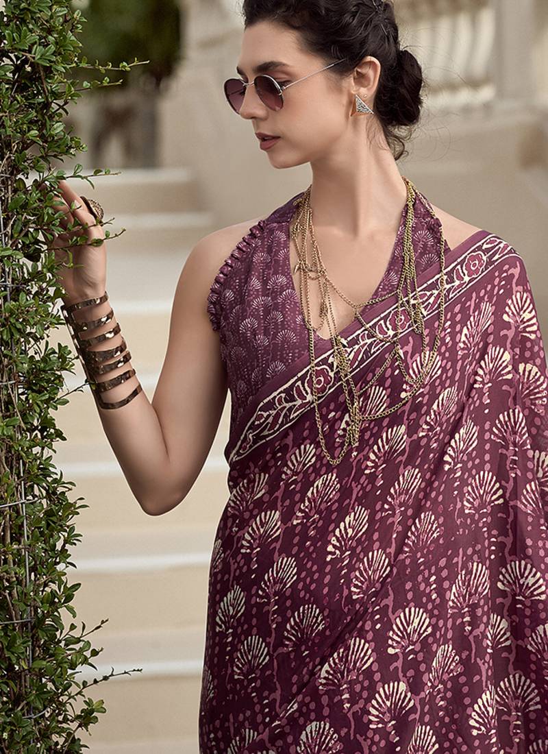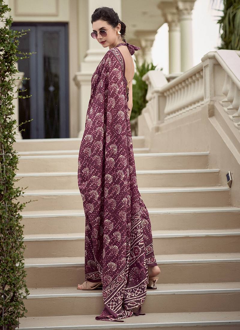 Wine pure mal mal silk saree