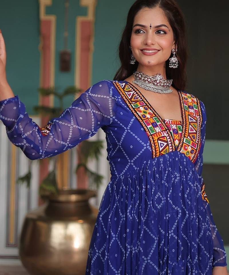 | Product Description | A Stylish Blue Designer Gown Crafted From High Quality Faux Blooming Fabric, Beautifully Enhanced With A Combination Of Embroidery And Print Detailing. This Elegant Outfit Blends Modern Ethnic Design With Effortless Comfort—Perfect For Festive Gatherings, Celebrations, Parties, And Family Events. |