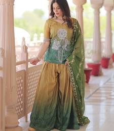 | Product Description | Experience Elegance Blended With Contemporary Charm In This Green Chinnon Print Gown, Enhanced With Delicate Sequins Embroidery For A Subtle Festive Shimmer. Crafted From Premium Chinnon Print Fabric With A Smooth Tebby Silk Lining, This Gown Ensures A Luxurious Drape And Unmatched Comfort. The Vibrant Green Tone Paired With Multi Sequins Embroidered Highlights Creates A Refreshing, Graceful Look—Perfect For Festive Wear, Daytime Events, And Elegant Parties. The Outfit Comes Fully Stitched, Offering A Ready To Wear Designer Feel With Effortless Style. Paired With A Matching Lightweight Dupatta, It Completes The Look With A Touch Of Finesse. |