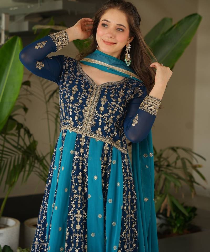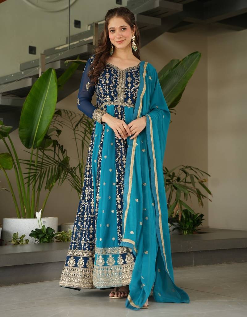 | • | Dupatta | : | Color- Blue / Fabric- Faux Georgette |