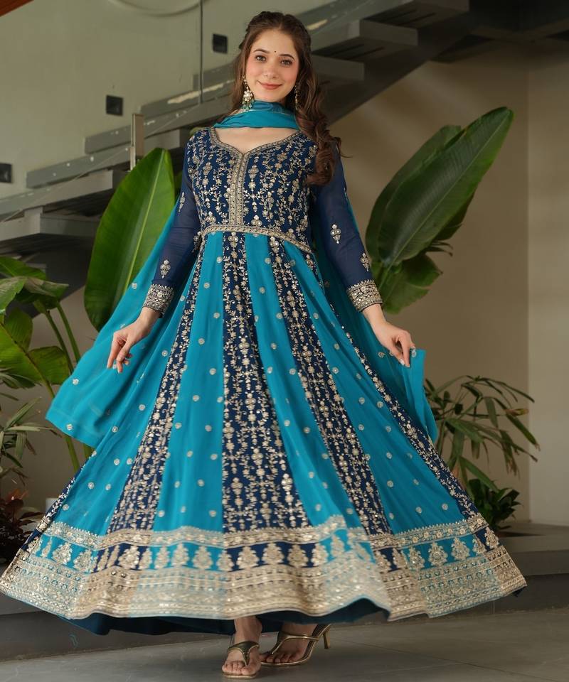 | Product Description | Make A Grand Style Statement With This Luxurious Rama Green Faux Blooming Embroidered Gown, Crafted To Perfection With Rich Multi Sequins Work. The Premium Faux Blooming Fabric Offers An Elegant Fall, Smooth Texture, And A Perfectly Structured Silhouette. The Vibrant Rama Shade Enhances The Intricate Embroidery, Giving The Outfit A Festive Shine Ideal For Weddings, Receptions, Festivals, And Special Celebrations. Fully Stitched For A Seamless Fit, This Gown Delivers Both Comfort And High End Fashion In One Stunning Ensemble. A Beautifully Coordinated Dupatta Completes The Look With Grace And Sophistication. |