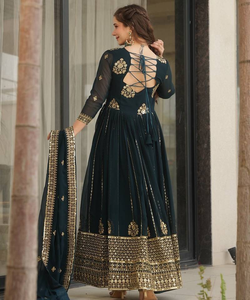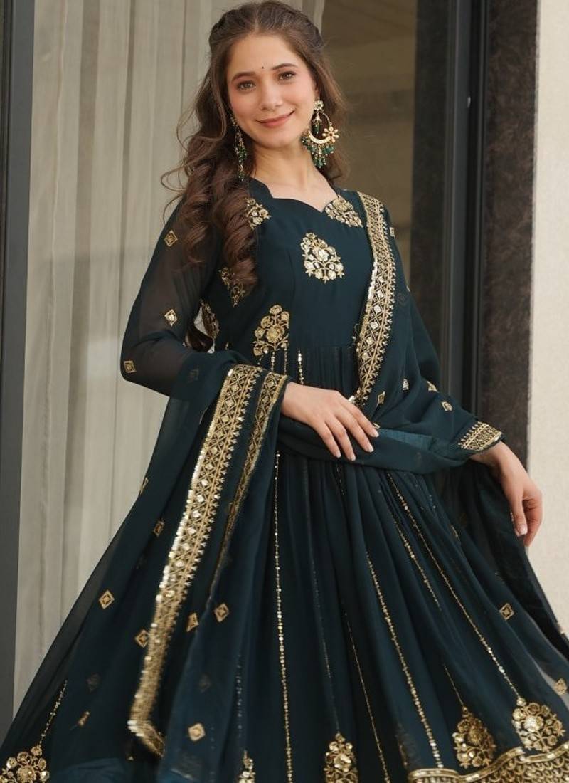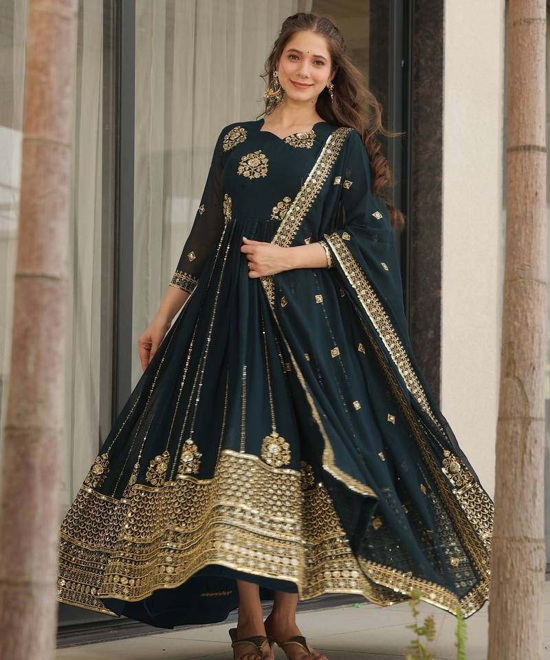 | Product Name | Faux Blooming Sequins Embroidered Festive Gown With Matching Dupatta | Rama Color | Party Wear | |