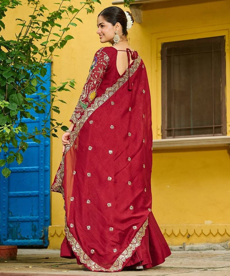 | Product Description | Enhance Your Ethnic Wardrobe With This Stunning Maroon Vichitra Silk Stitched Designer Gown, Crafted To Deliver Luxury, Comfort, And Elegance In Every Detail. The Rich Vichitra Fabric Provides A Premium Fall And Sheen, Making It Perfect For Festive And Wedding Functions. Beautiful Zari Embroidery Work Adds A Regal Touch, Making The Outfit Ideal For Receptions, Sangeet Nights, Festive Celebrations, And Special Party Occasions.