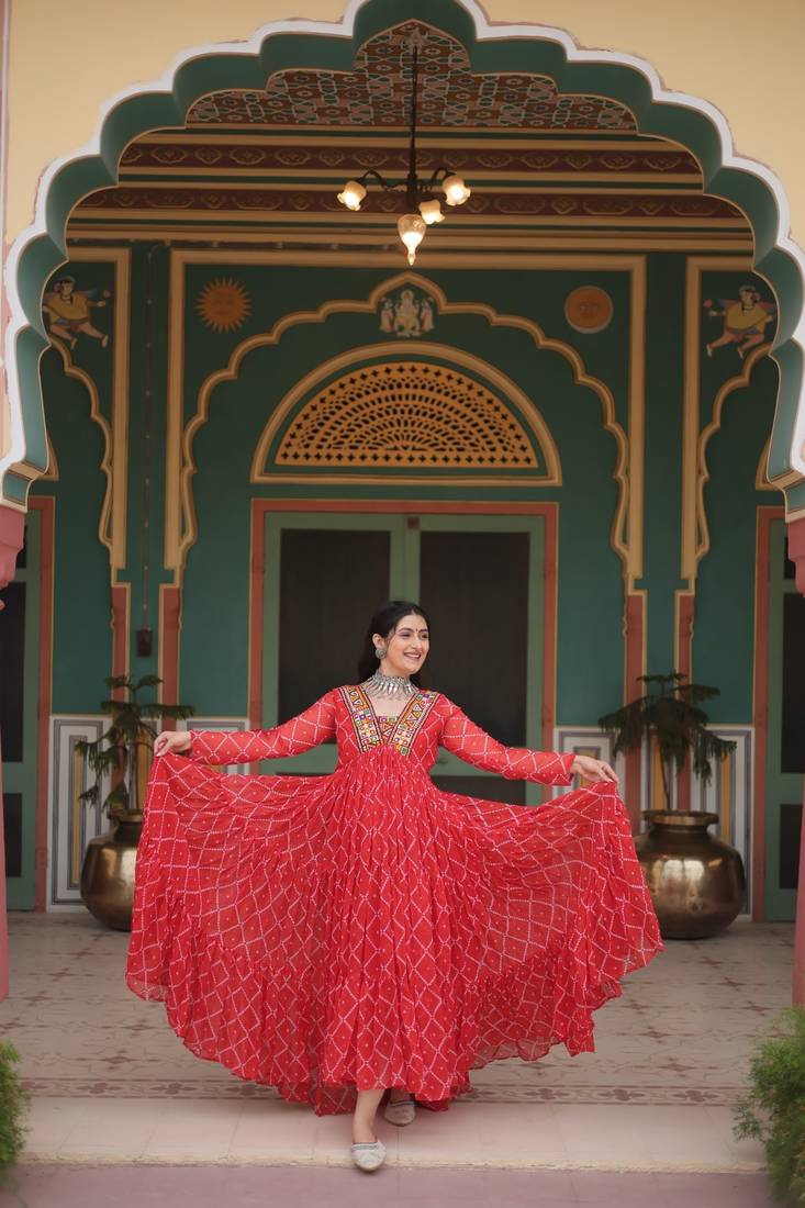 | Product Description | A Vibrant Orange Designer Gown Crafted From Smooth And Durable Faux Blooming Fabric. Featuring A Beautiful Blend Of Embroidery & Print Work, This Outfit Offers A Perfect Fusion Of Elegance And Modern Ethnic Styling. Ideal For Festive Events, Parties, Haldi Functions, Family Gatherings, And Day Celebrations. |