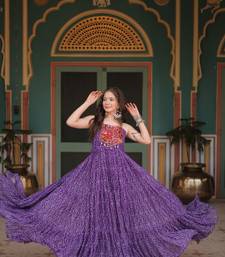 Purple faux georgette printed gown stylish festive & party wear semi stitched