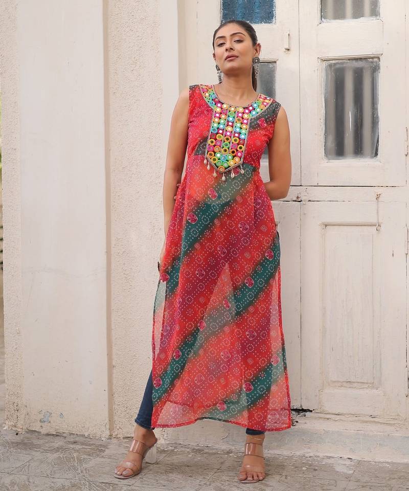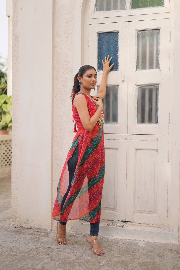| Product Description | This Red Georgette Kurta Brings Together Elegance And Comfort With Its Flowing Drape And Rich Embroidered Detailing. Designed In A Semi Stitched Format, It Allows Easy Customization Up To Size 42, Making It Suitable For Various Body Shapes. The Lightweight Fabric And Stylish Embroidery Make It An Ideal Choice For Festive Events, Special Functions, And Traditional Gatherings. Perfect For Pairing With Your Preferred Bottoms To Create A Complete, Personalized Ethnic Look. |