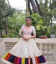 | Product Name | Roman Fabric Embroidered Semi Stitched White Designer Gown With Matching Dupatta | Party & Festive Wear | |