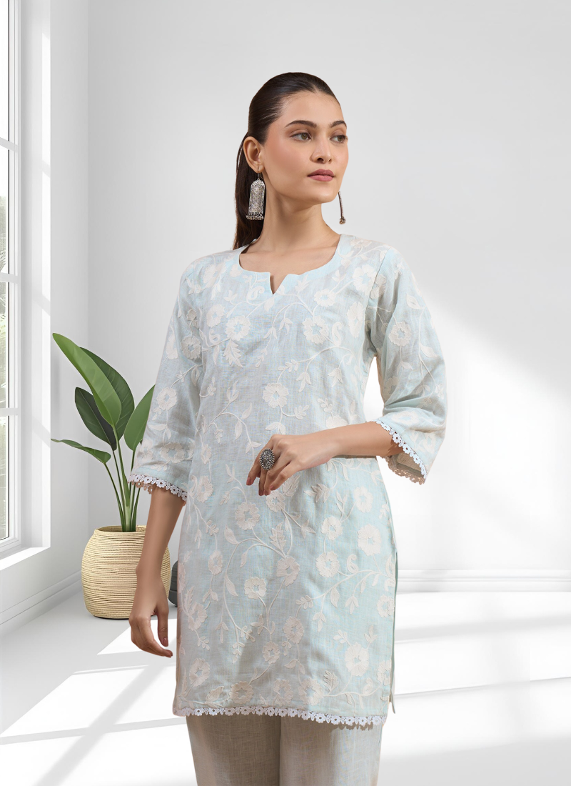 | Product Name | Powder Blue Linen Short Kurta With Pant For Women's | |