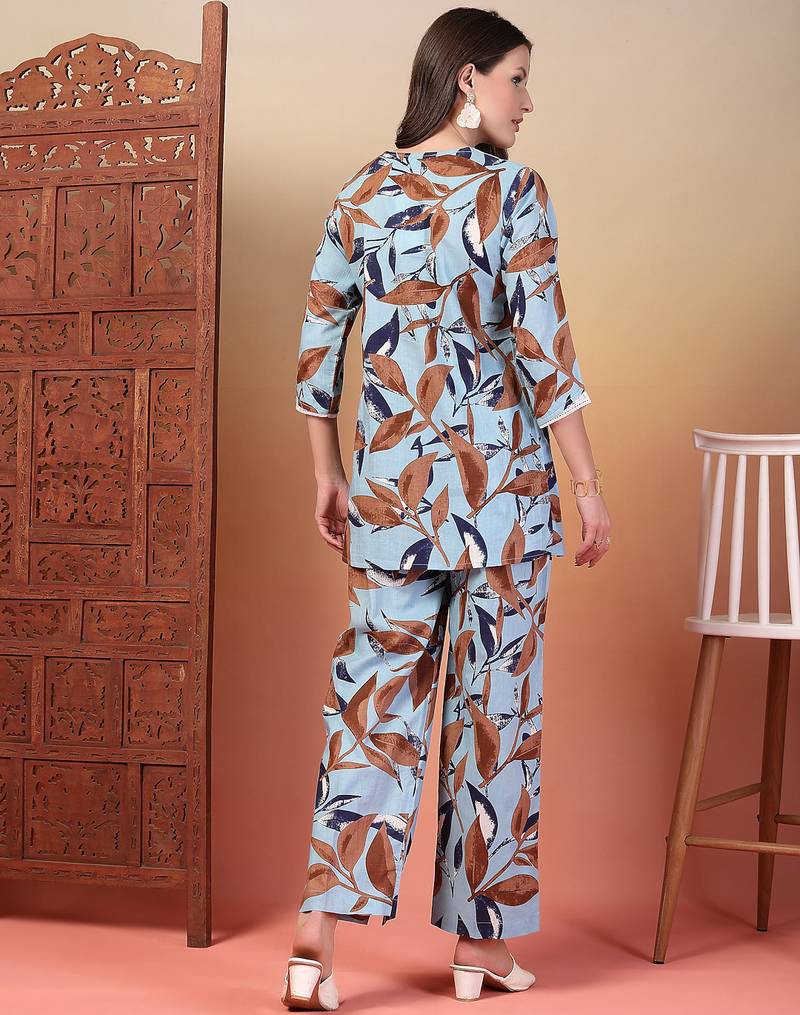 | Product Name | Cotton Sky Blue Abstract Print Co Ord Set | |