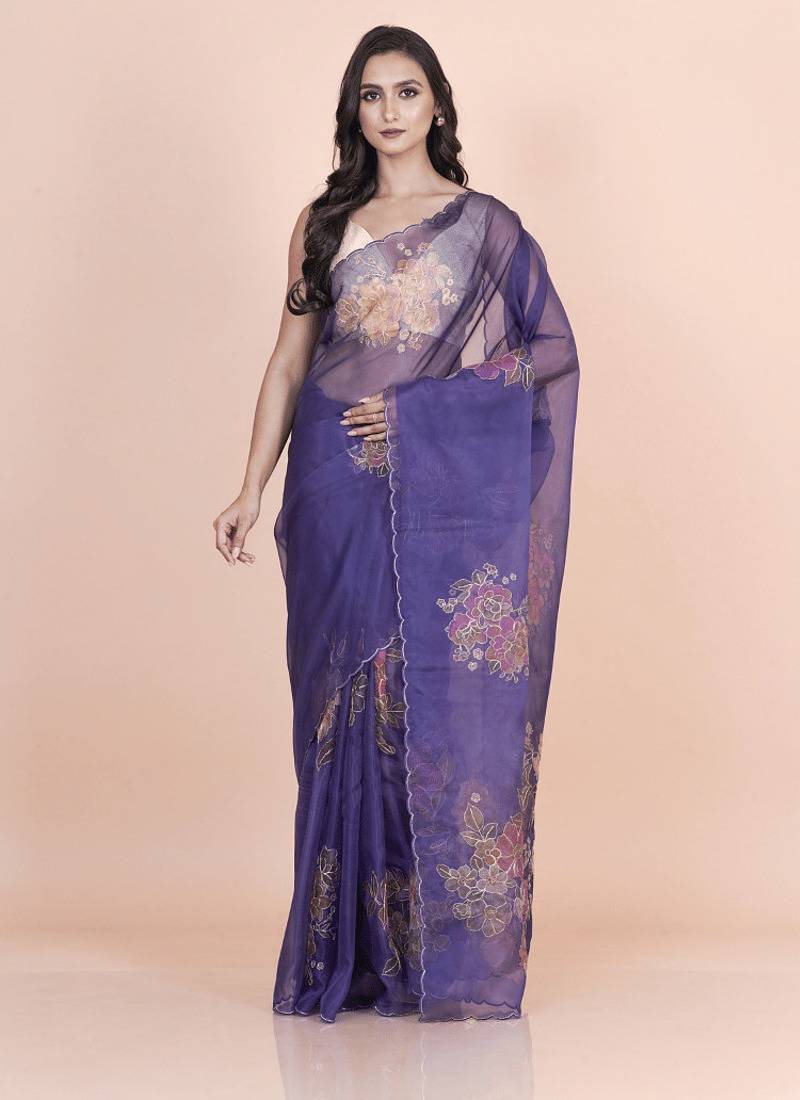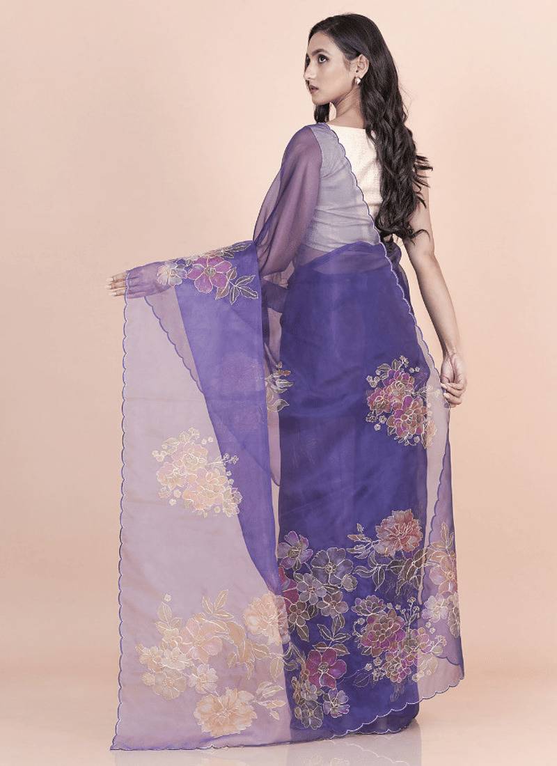 | Product Name | Blue Coloured Floral Styled Digital Printed With Hand Pita Work N. Orgenza Saree With Blouse | |