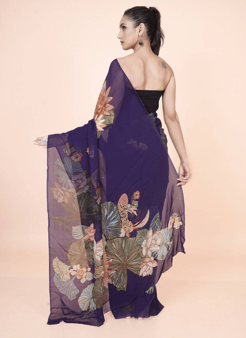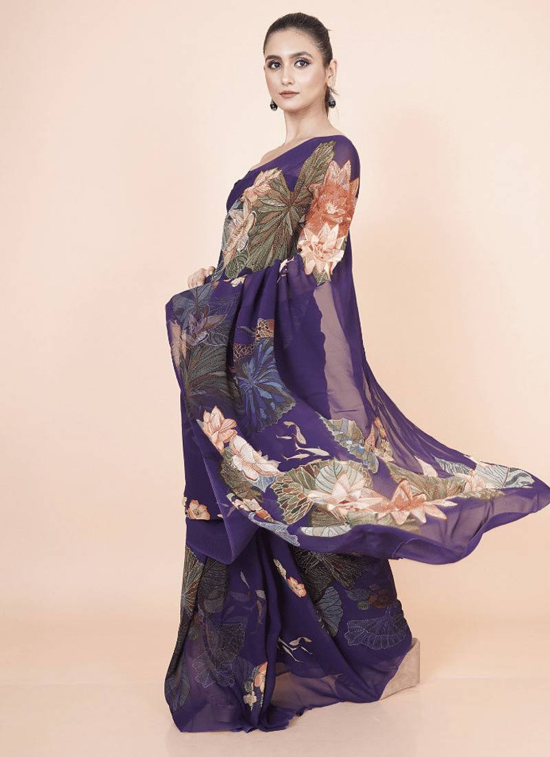 | Product Name | Purple Coloured Botanical Floral Styled Digital Printed Georgette Saree With Blouse | |