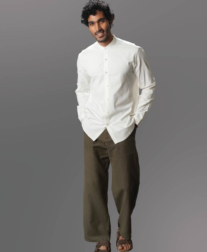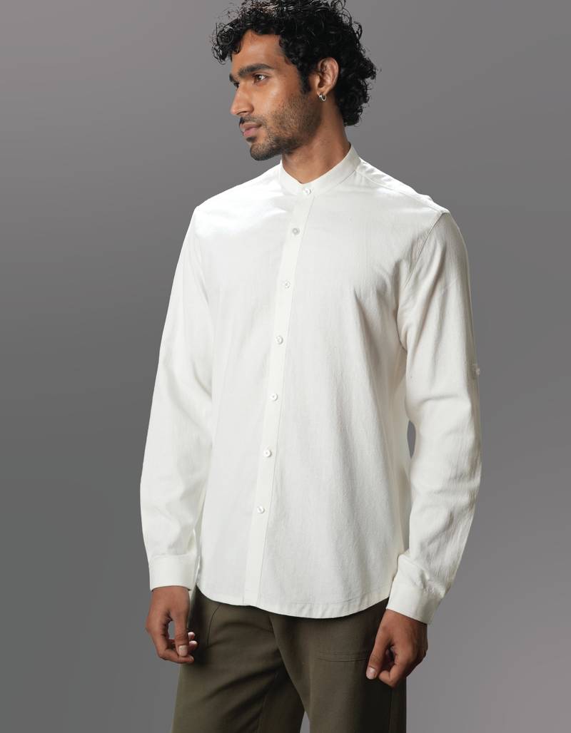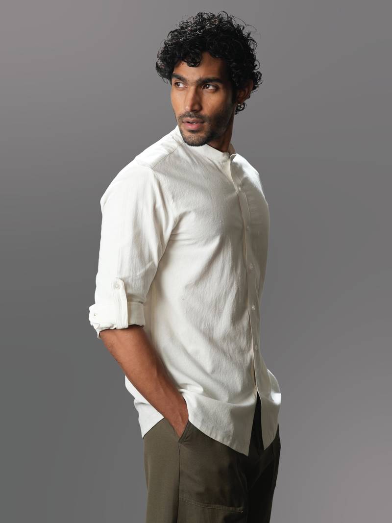 | Product Name | White Solid Handloom Mandarin Collar Shirt | |