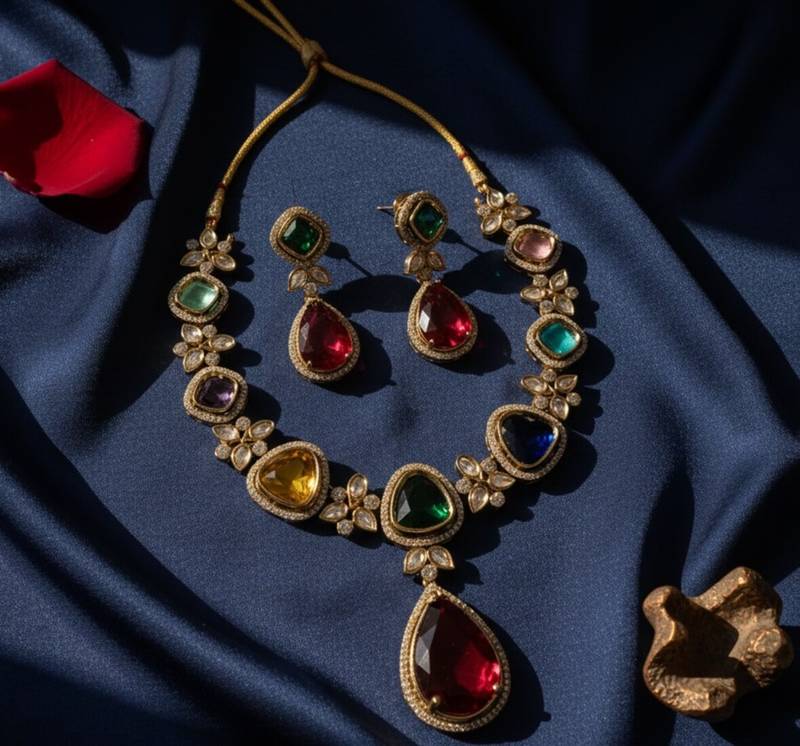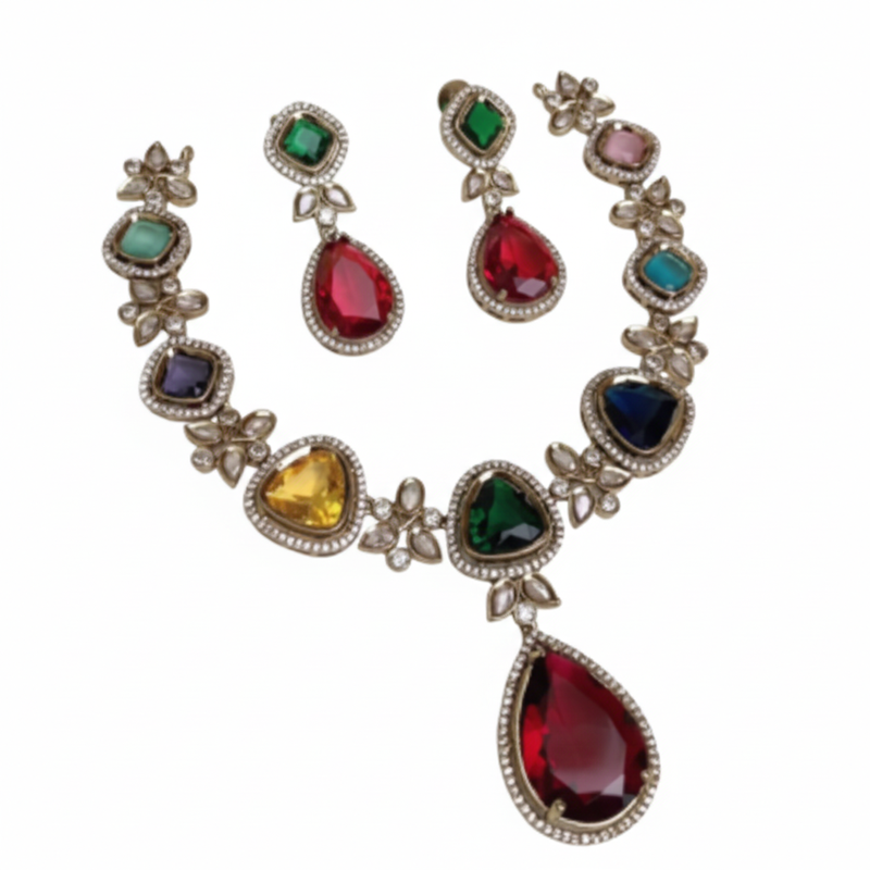 | Product Name | Gold Toned Multicolor Stone Studded Jewellery Set | |