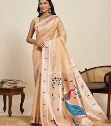 Beige art silk woven kanjivaram silk saree with blouses
