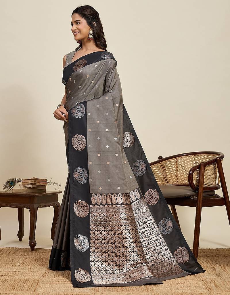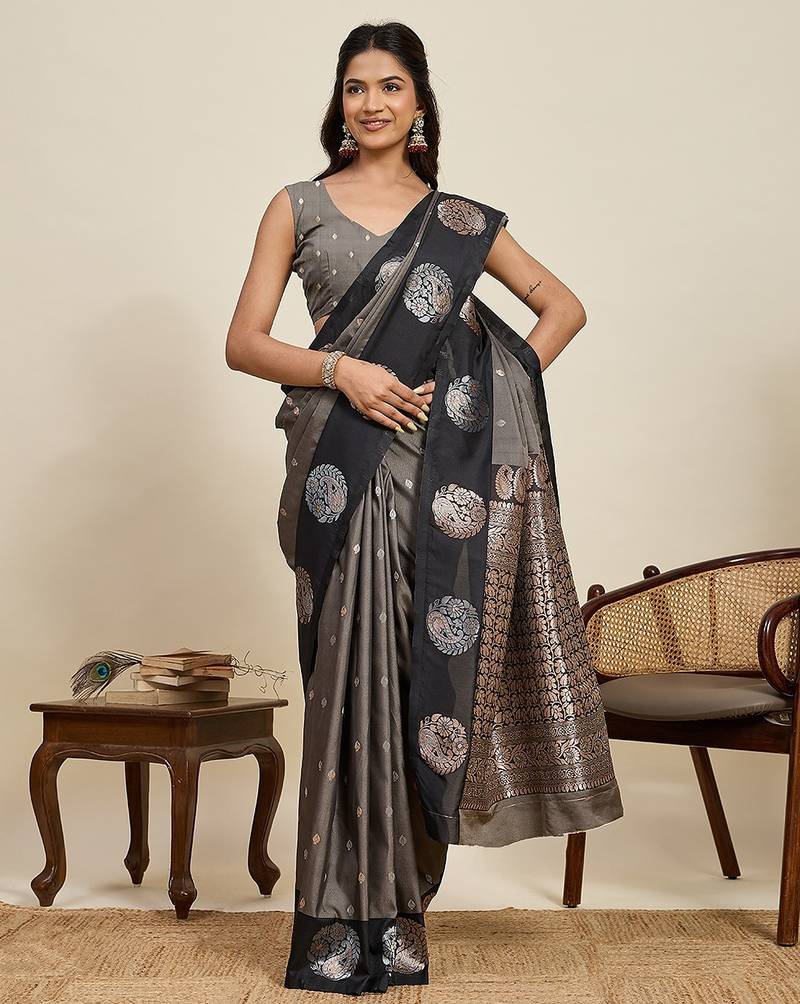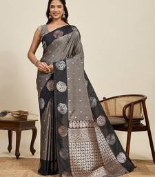Black art silk woven kanjivaram silk saree with blouses