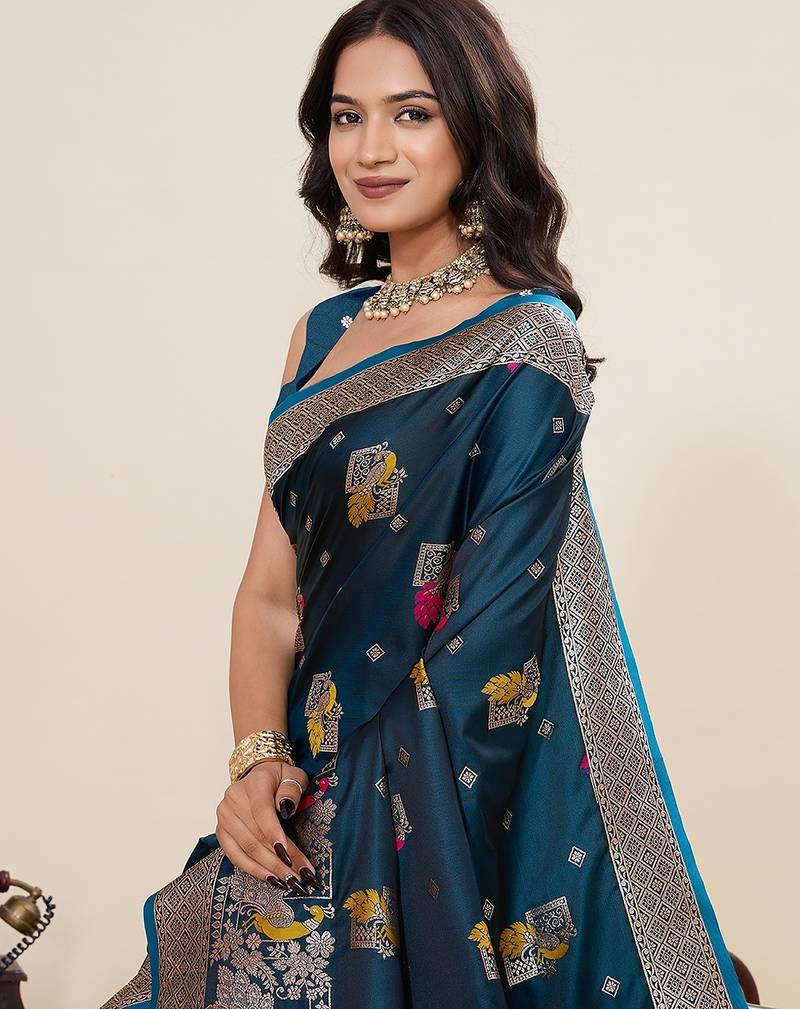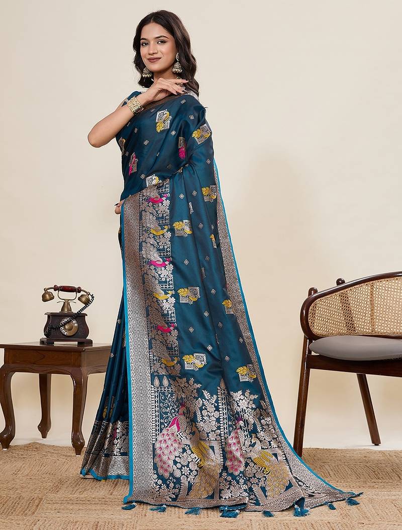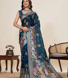 Blue art silk woven kanjivaram silk saree with blouses