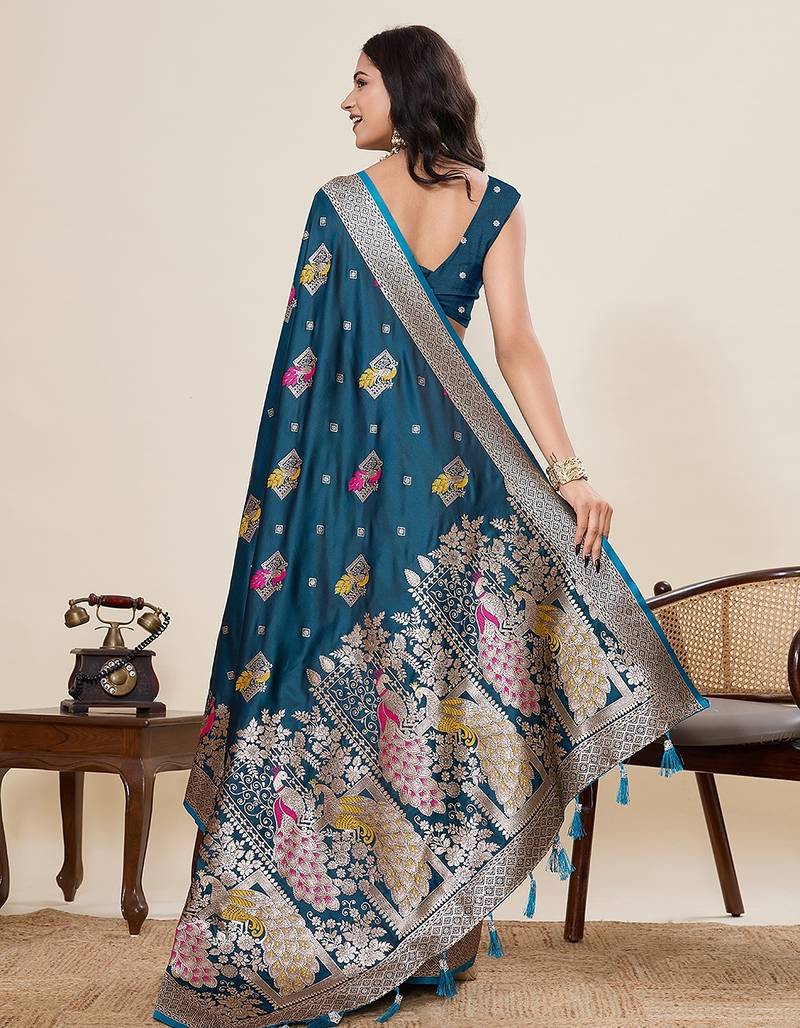 | • | Saree | : | Color- Blue / Fabric- Art Silk |