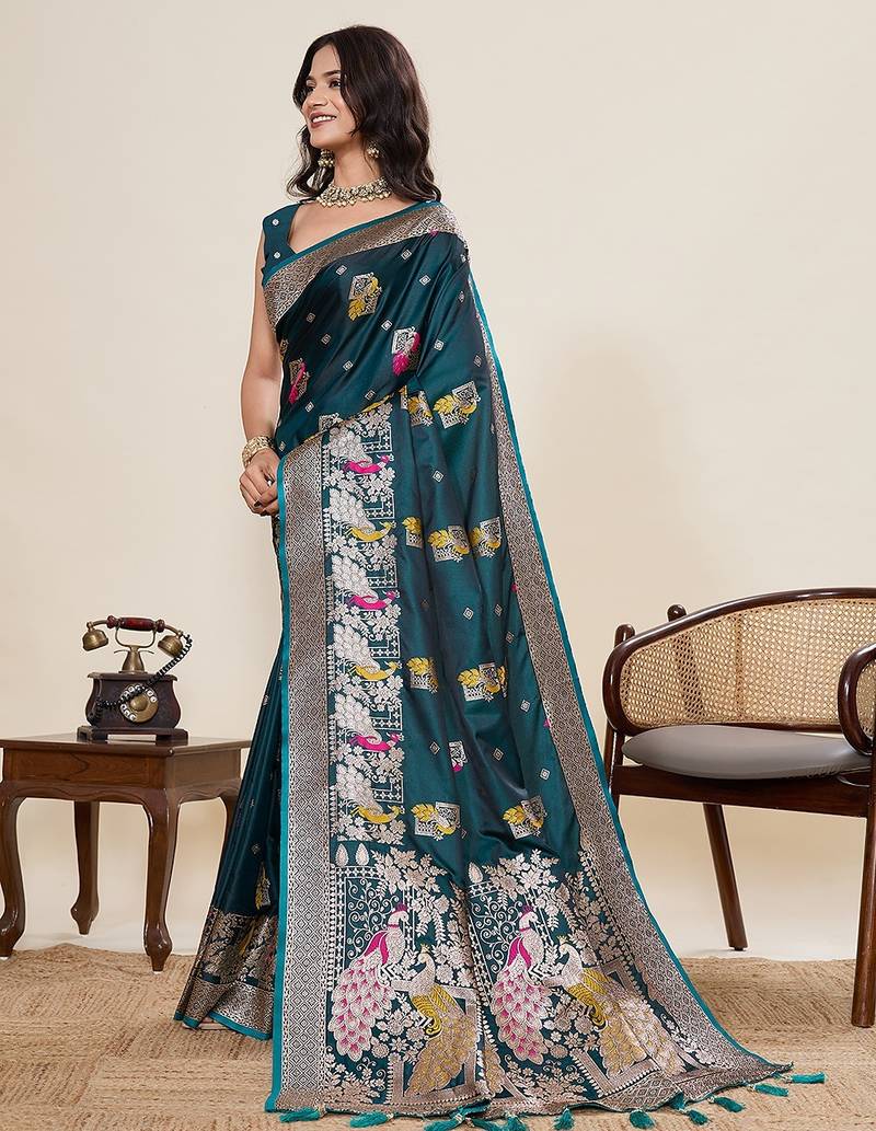 | • | Saree | : | Color- Blue / Fabric- Art Silk |