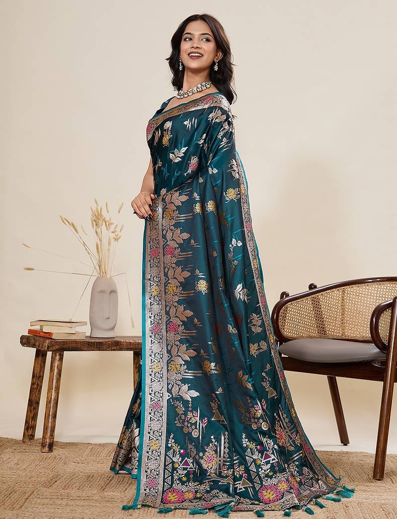 | • | Saree | : | Color- Blue / Fabric- Art Silk |