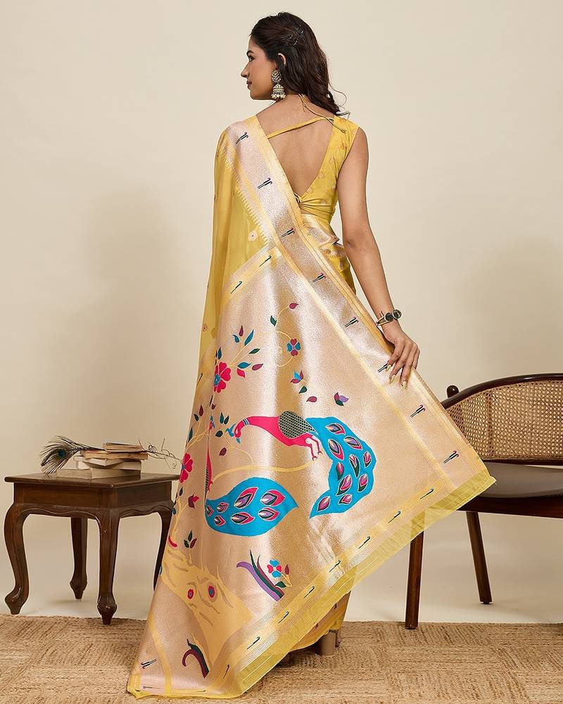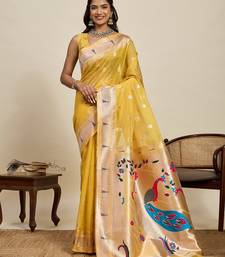 Gold art silk woven kanjivaram silk saree with blouses
