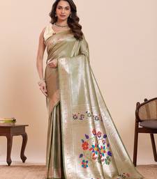 Green art silk woven kanjivaram silk saree with blouses