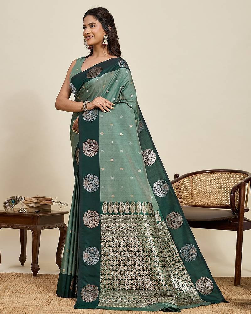 | Product Name | Green Art Silk Woven Kanjivaram Silk Saree With Blouses | |