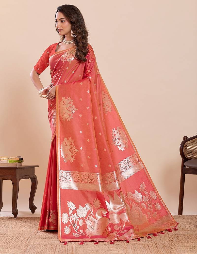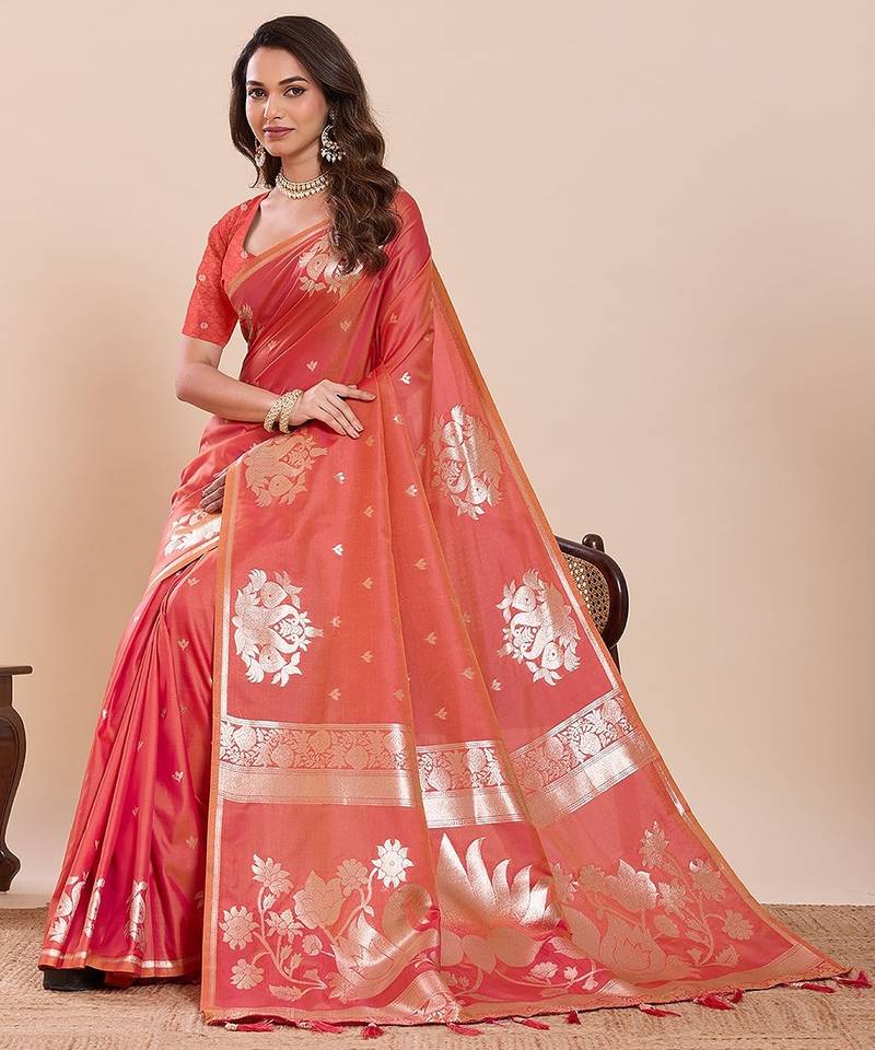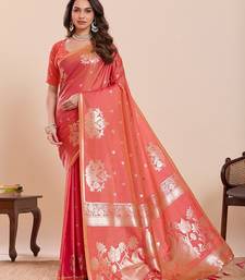 Orange art silk woven kanjivaram silk saree with blouses