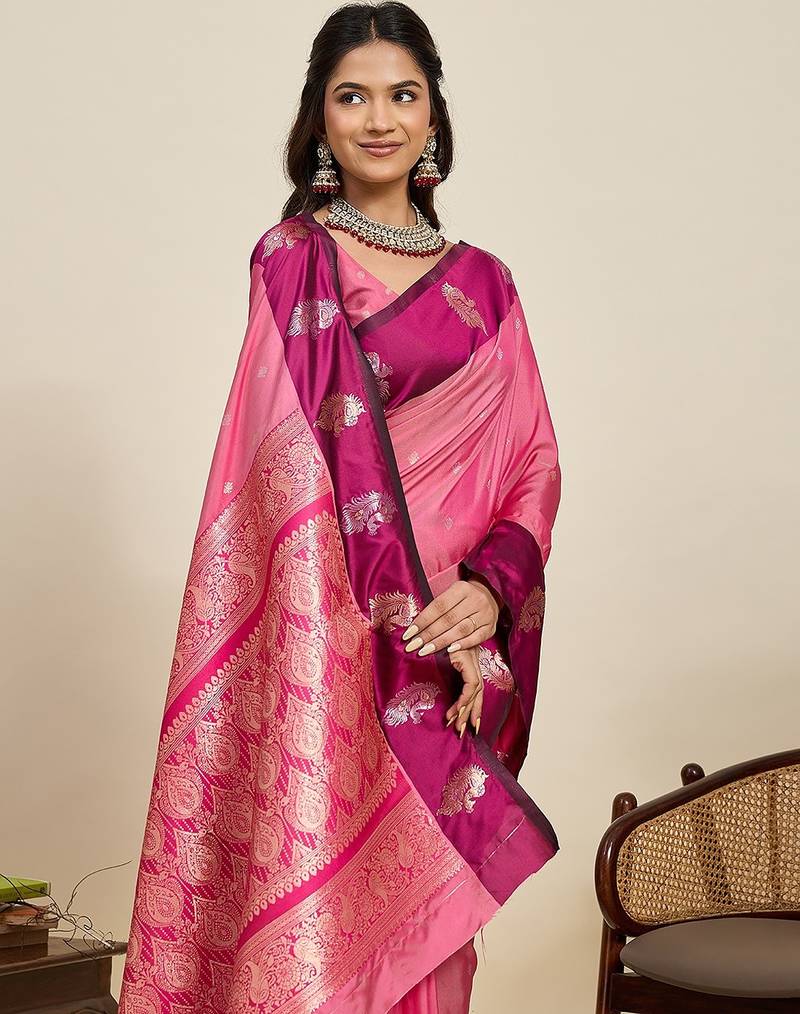 | Product Name | Pink Art Silk Woven Kanjivaram Silk Saree With Blouses | |