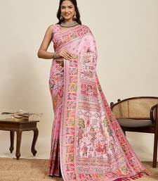 Pink art silk woven kanjivaram silk saree with blouses