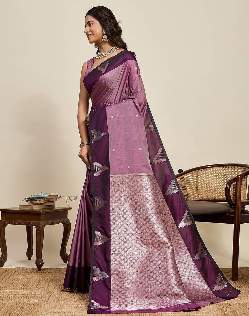 Product Name Purple Art Silk Woven Kanjivaram Silk Saree With Blouses