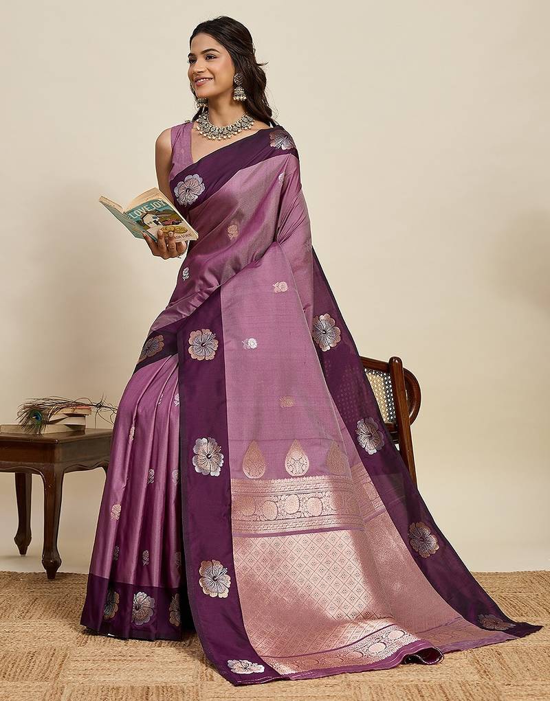 | Product Name | Purple Art Silk Woven Kanjivaram Silk Saree With Blouses | |