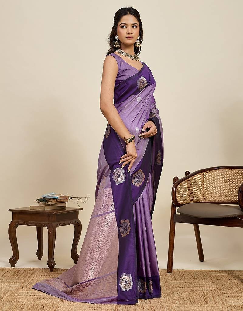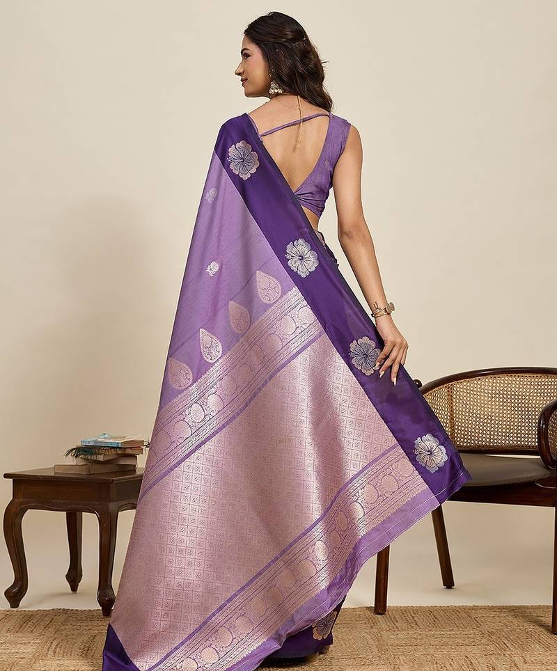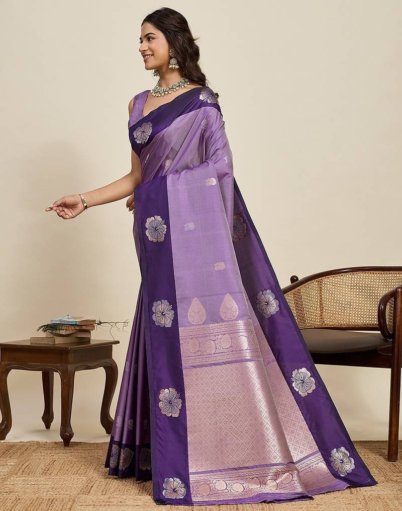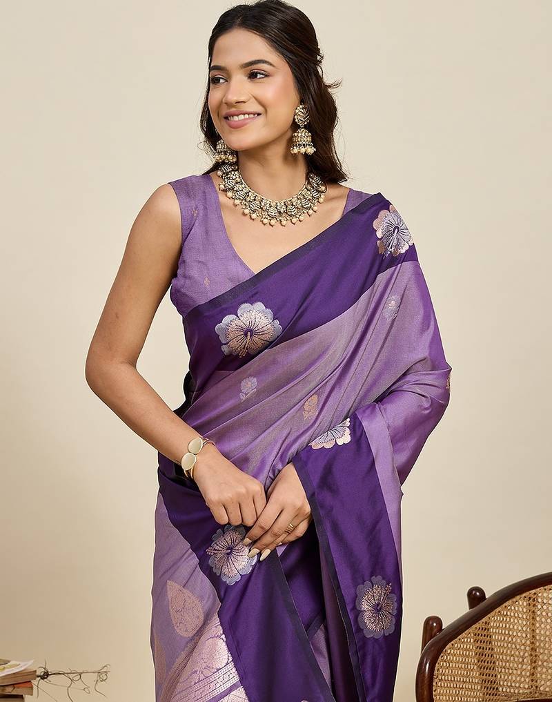 Violet art silk woven kanjivaram silk saree with blouses