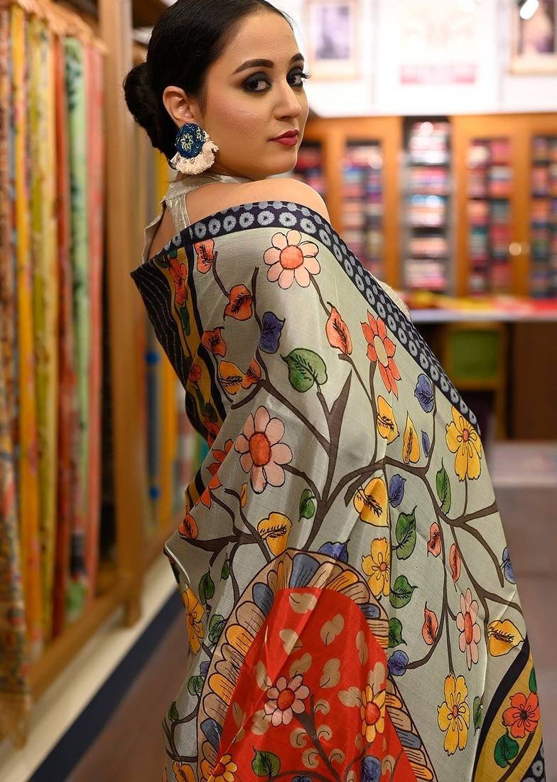 Product Name Black Printed Pure Cotton Black Saree With Blouse