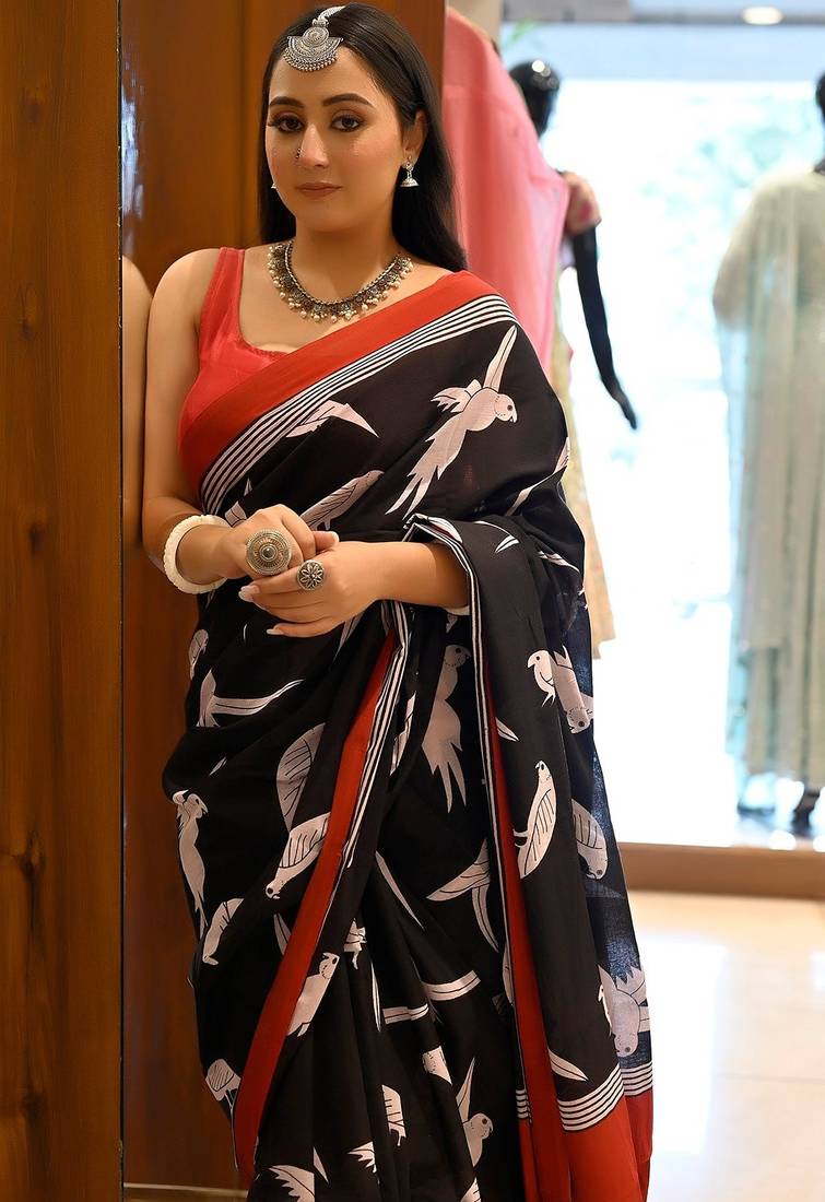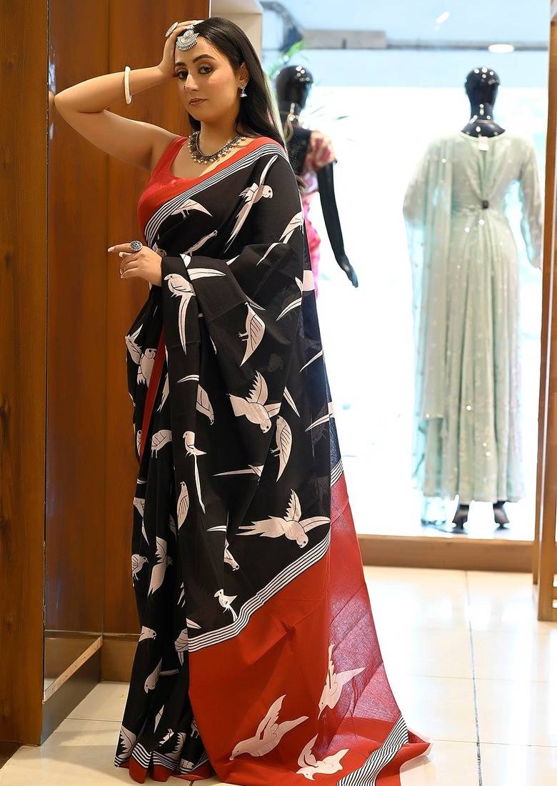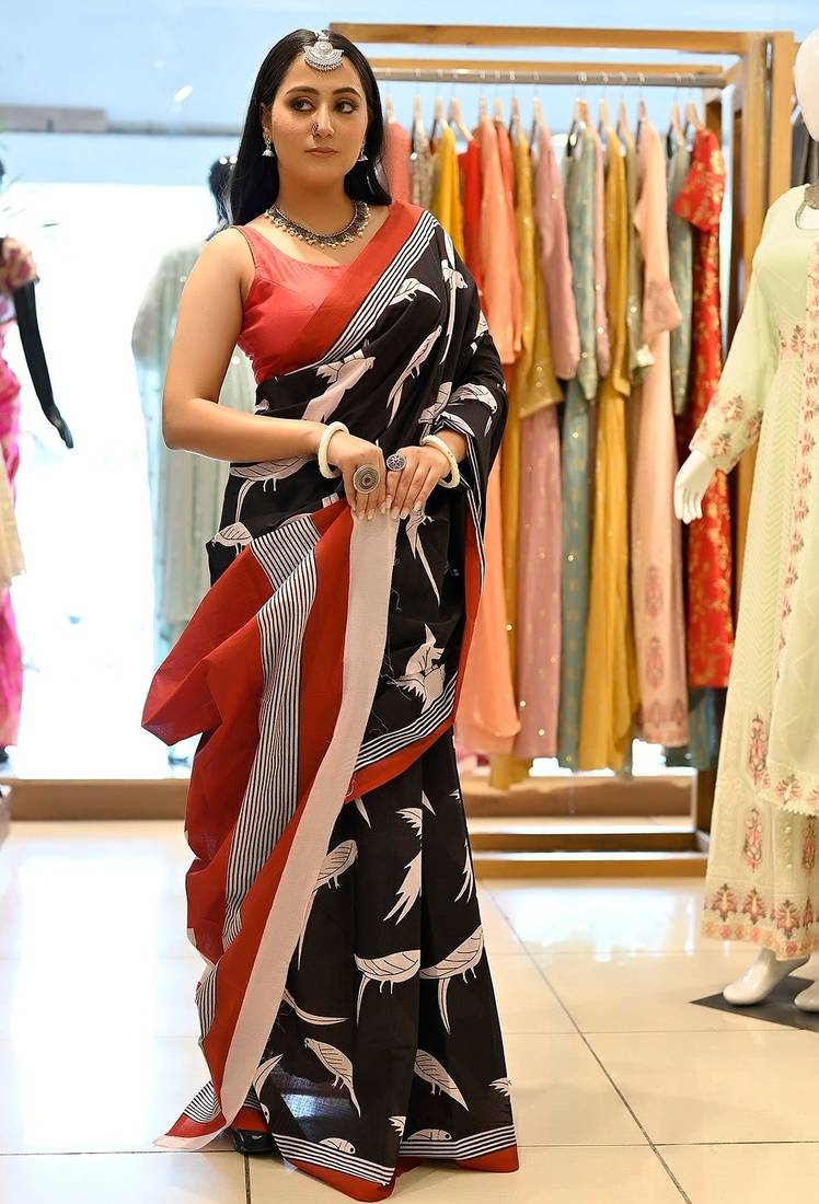 Product Name Black Printed Pure Cotton Black Saree With Blouse