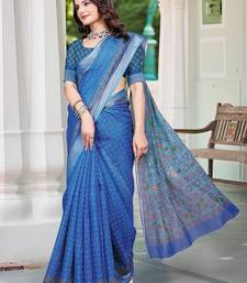 Blue printed pure cotton blue saree with blouse