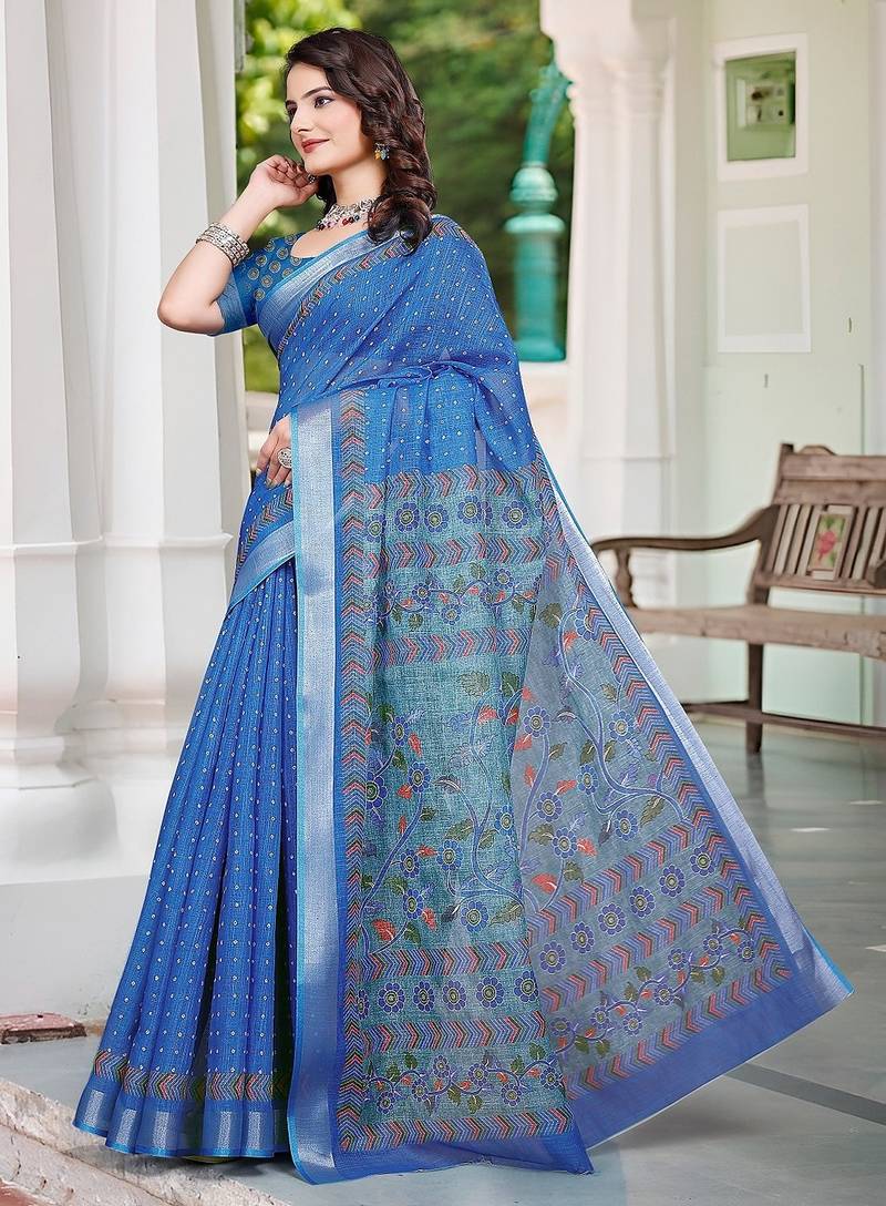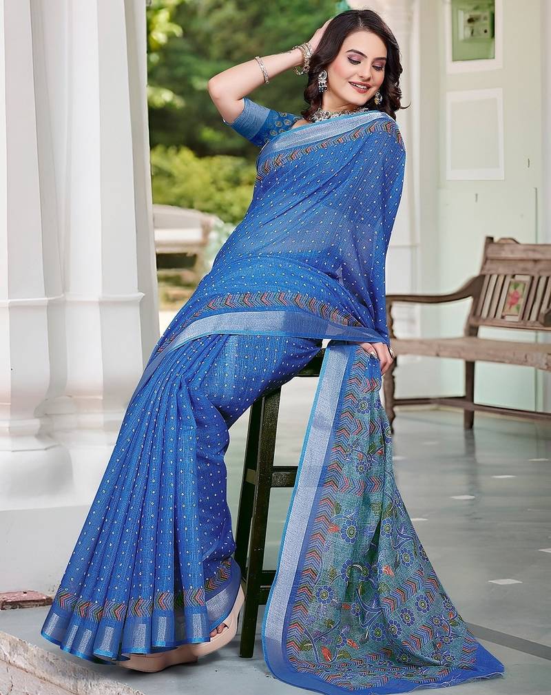 | Product Name | Blue Printed Pure Cotton Blue Saree With Blouse | |