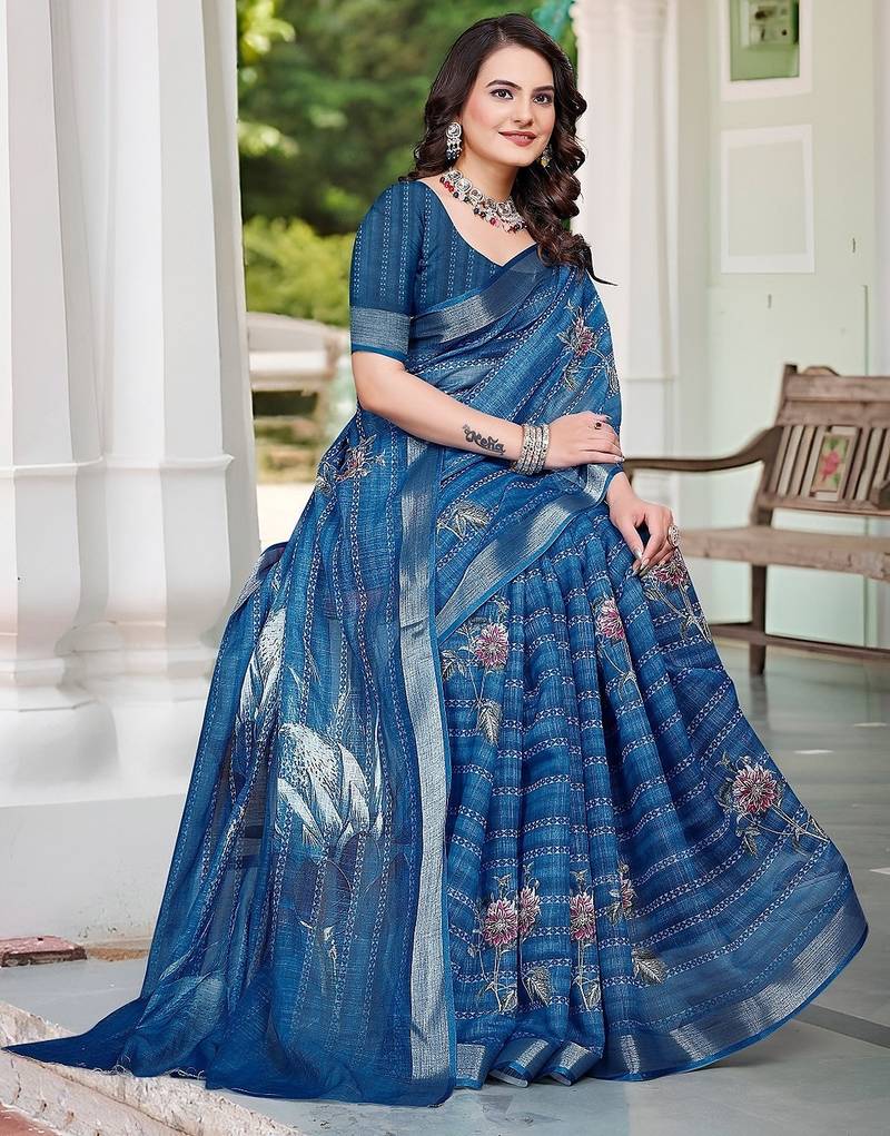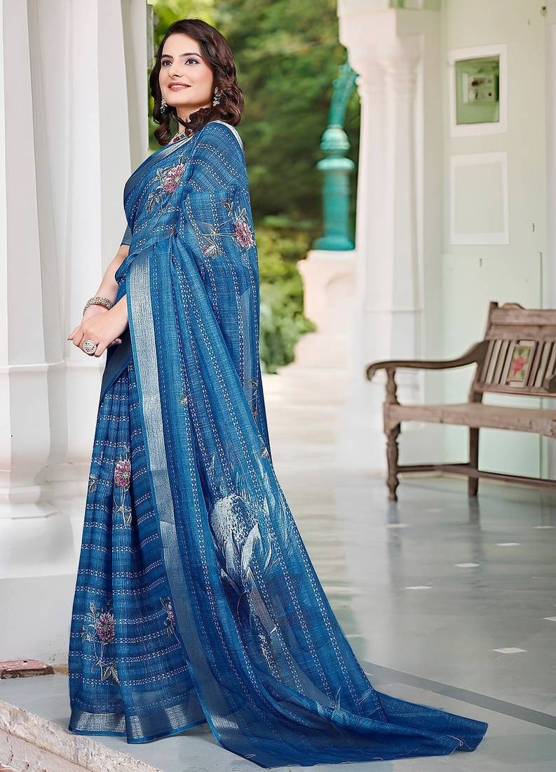 | Product Name | Blue Printed Pure Cotton Blue Saree With Blouse | |