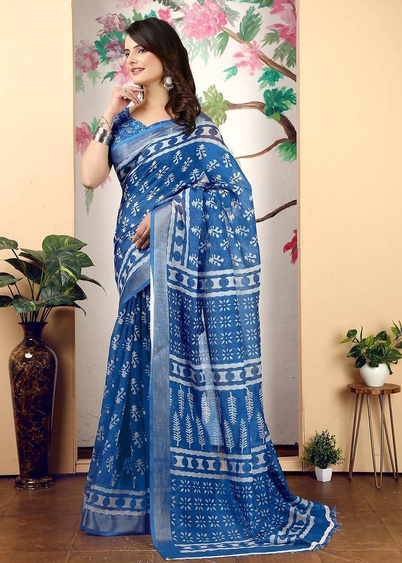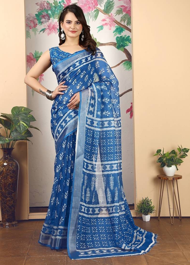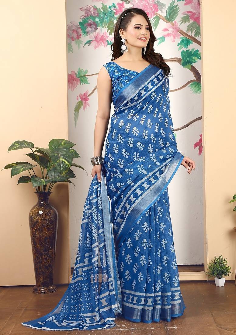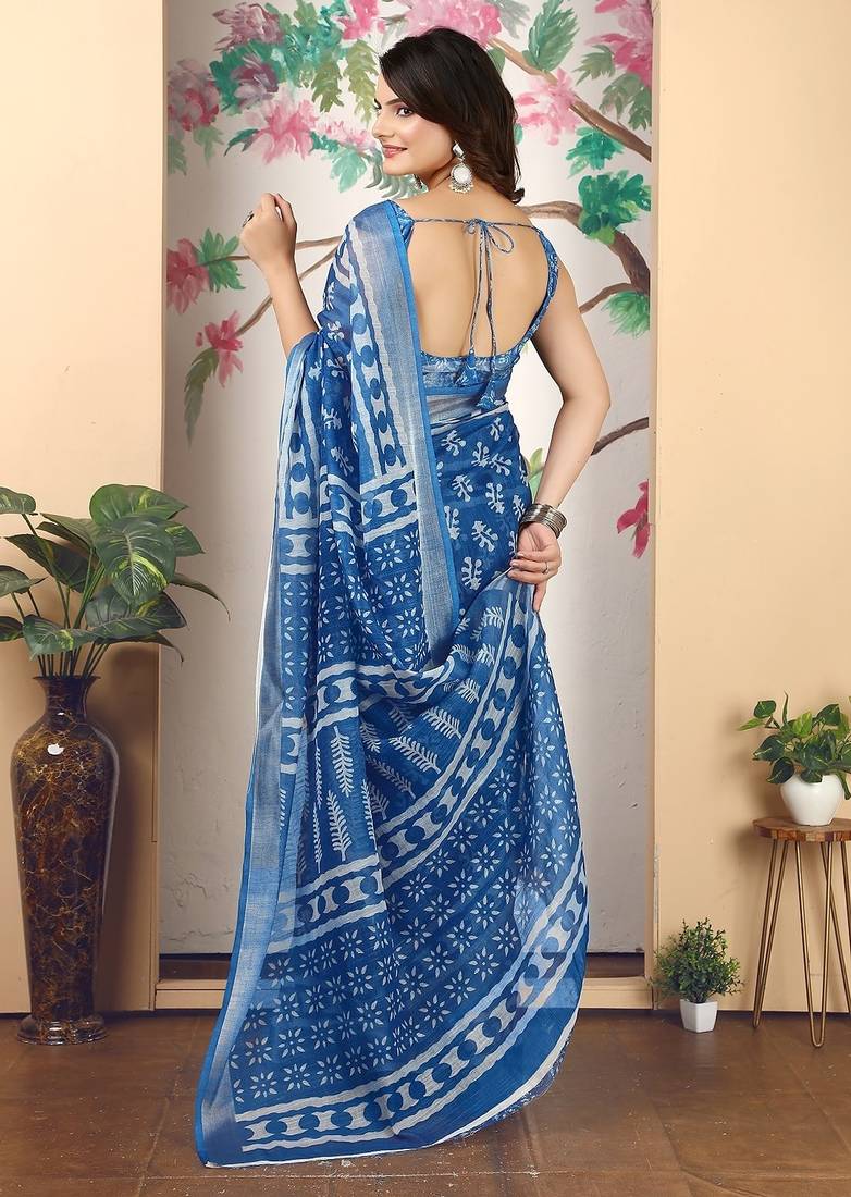 | Product Name | Blue Printed Pure Cotton Blue Saree With Blouse | |