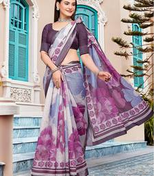 Multicolor printed pure cotton multicolor saree with blouse