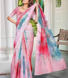 Multicolor printed pure cotton multicolor saree with blouse
