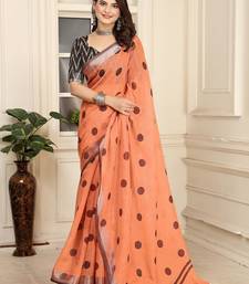 Peach printed pure cotton peach saree with blouse