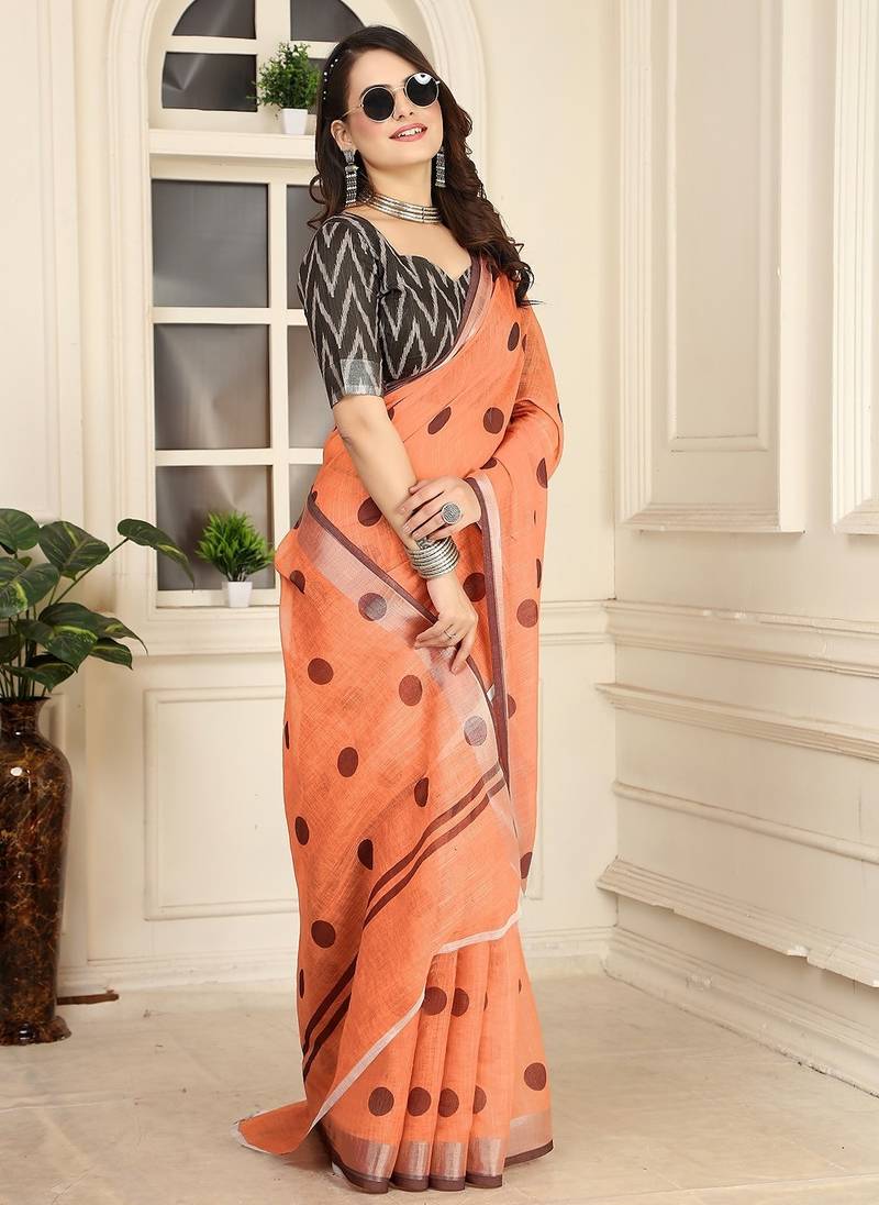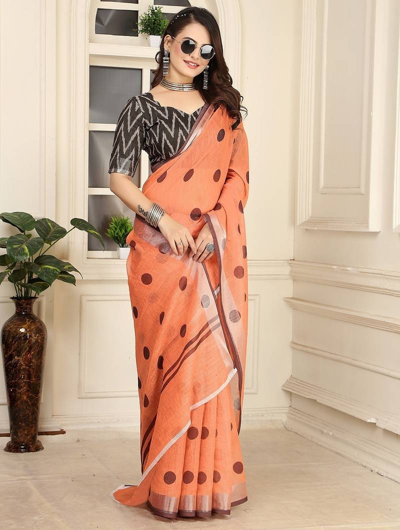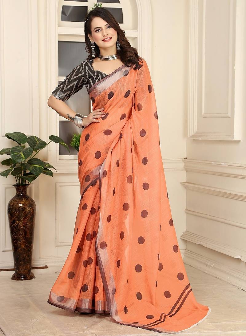 | Product Name | Peach Printed Pure Cotton Peach Saree With Blouse | |