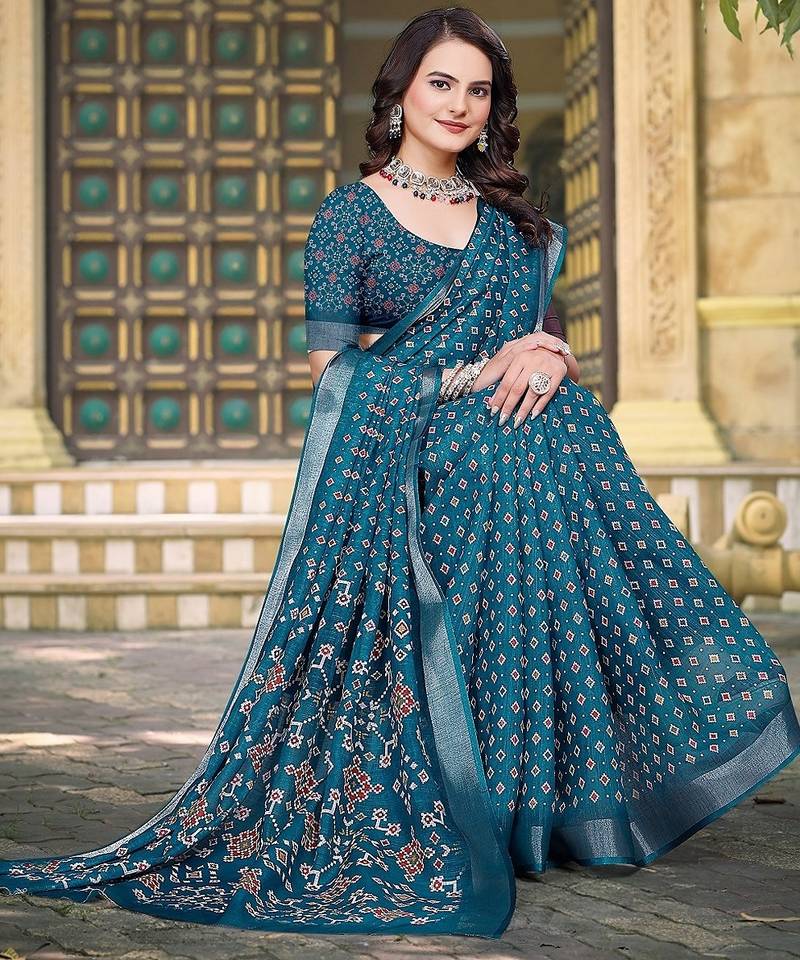 | Product Name | Teal Printed Pure Cotton Teal Blue Saree With Blouse | |